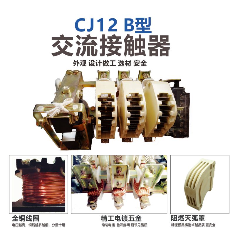 二:結構一:CJ12B-600/5 220V 380V 交流接觸器主要由電磁系統(tǒng)、觸點系統(tǒng)、滅弧系統(tǒng)及其它部分組成: