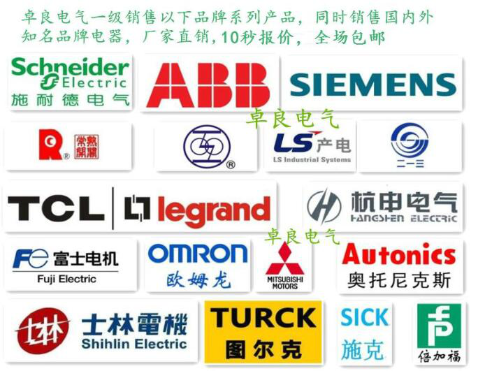 卓良電氣銷售施耐德電氣,常熟開關(guān)廠,上海人民電器,abb電氣,西門子電氣,天水二一三,ls產(chǎn)電,歐姆龍,圖爾克,奧托尼克斯,倍加福,基恩士,華立電表,正泰電器,德力西電器,中國。人民電器等知名品牌電器!大量現(xiàn)貨,特價出售中!